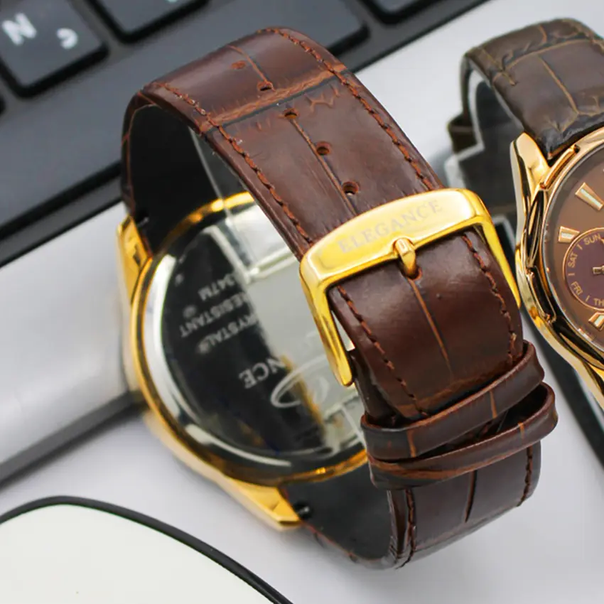 ساعت برند الگانس از برند های معروف است که از کیفیت بسیار بالایی برخوردار است بند چرم این ساعت ست بسیار مقاوم وبا کیفیت است موتور این ساعت ژاپن است از نظر زیبایی هم که مورد پسند اکثر افراد قرار می گیرد