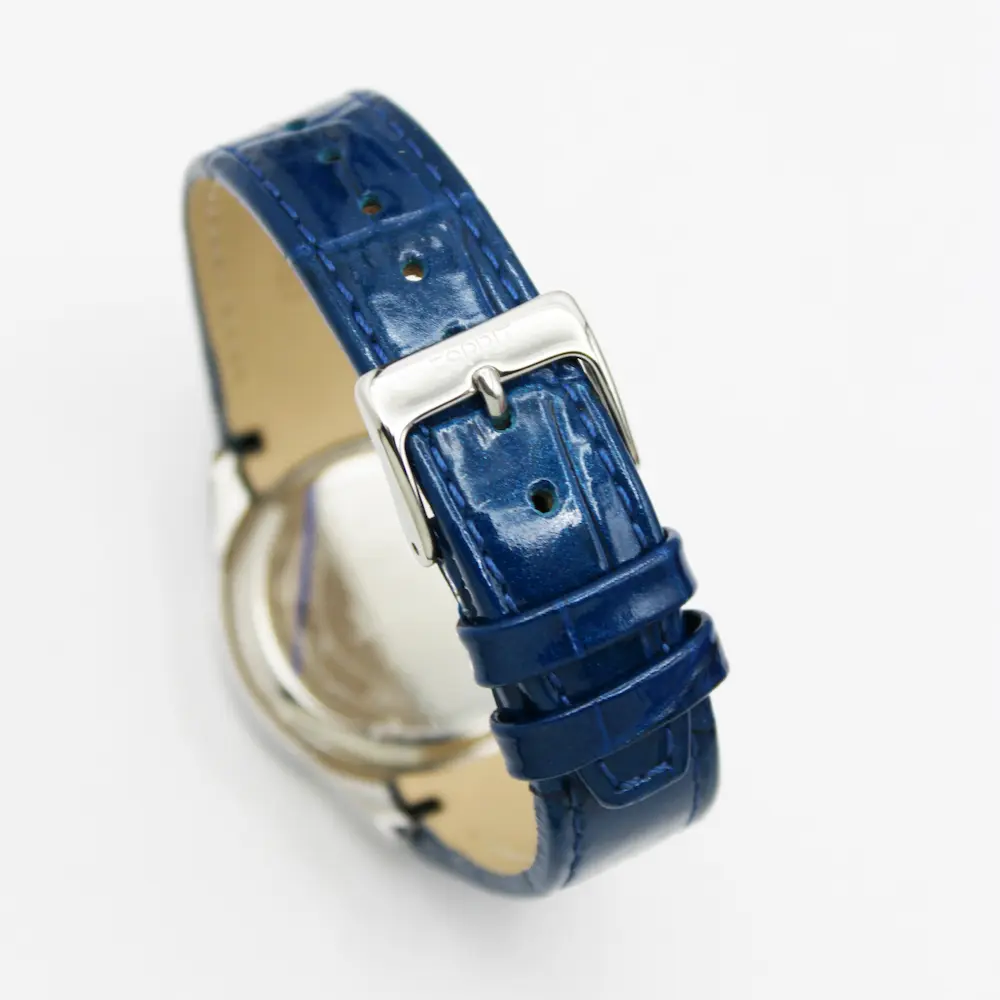 این ساعت مچی علاوه بر ظاهر خاص و شکیل از کیفیت بسیار عالی و بی نظیری برخوردار می باشد.قلب تپنده این ساعت مچی ژاپن می باشد و دارای 3 موتور فعال فول تایم می باشد.قاب این ساعت مچی تماما نگین کاری مخراجی کار شده است که به هیچ وجه امکان ریختن این نگین ها وجود ندارد.موتورهای این ساعت به ترتیب دارای عقربه نمایشگر ایام هفته ، عقربه نمایشگر ساعت 1 تا 24 و عقربه نمایشگر تقویم می باشد.علاوه بر تمامی امکانات فوق جنس بدنه این ساعت استیل درجه 1 آنتی آلرژی و جنس بند آن چرم می باشد.ترکیب رنگ سرمه ای در بند این ساعت با قاب و قفل نقره ای و صفحه بنفش زیبایی آن را بی نهایت کرده است.صفحه این ساعت به دلیل ترکیب رنگ های بنفش و نقره ای نظر هربیننده ای را به خود جلب می کند.تمایز رنگ موتورها با زمینه بنفش در صفحه این ساعت دلیل خواندن راحت ساعت می باشد.این ساعت مچی عقربه ای زنانه اسپریت esprit مدل 88382 مچی دارای پک بسته بندی می باشد.مجموعه شمسین این ساعت مچی را همراه با 1 سال گارانتی کارکرد موتور و باتری خدمت شما عزیزان ارائه می دهد.شما عزیزان می توانید اکسسوری مدنظرتون (ساعت مچی ، عینک آفتابی و ادکلن ) مدنظرتون را بصورت نقد یا اقساط از مجموعه شمسین با برترین کیفیت تهیه کنید.