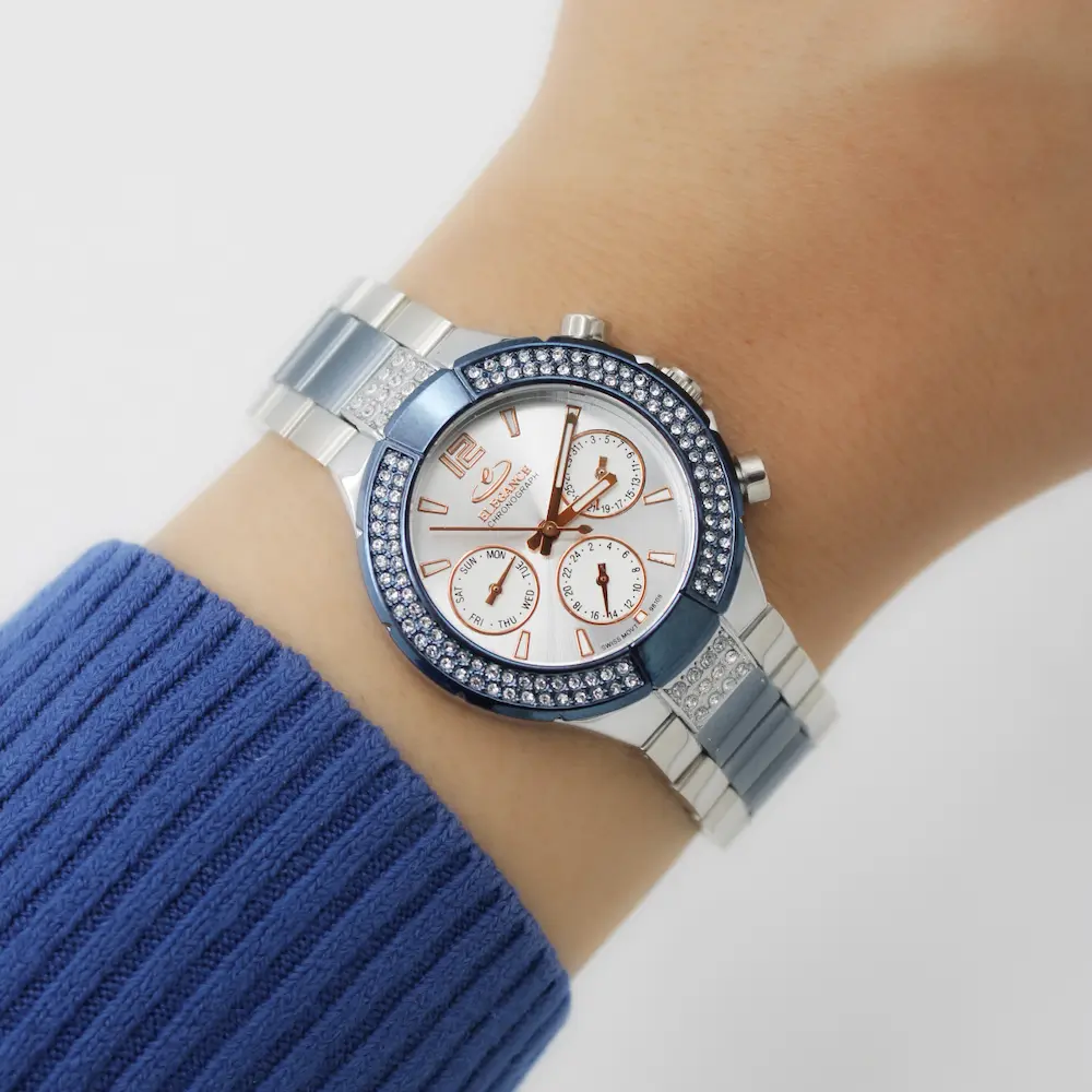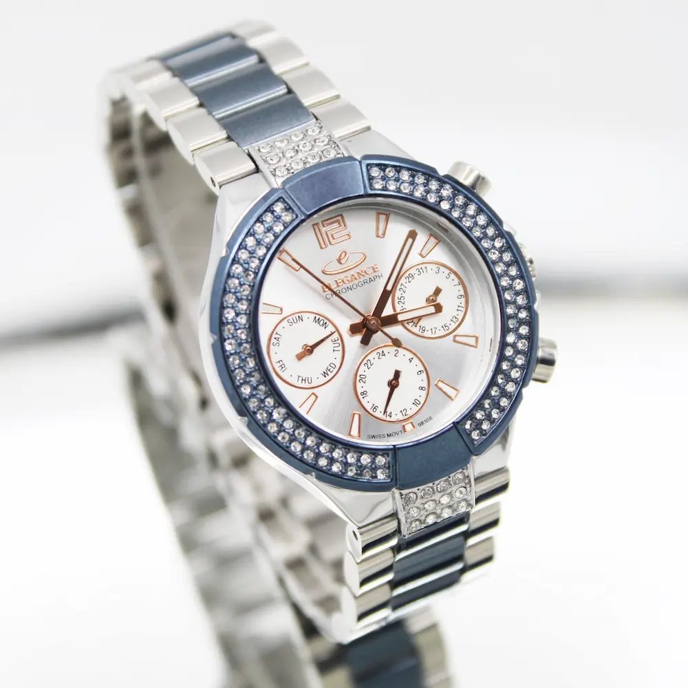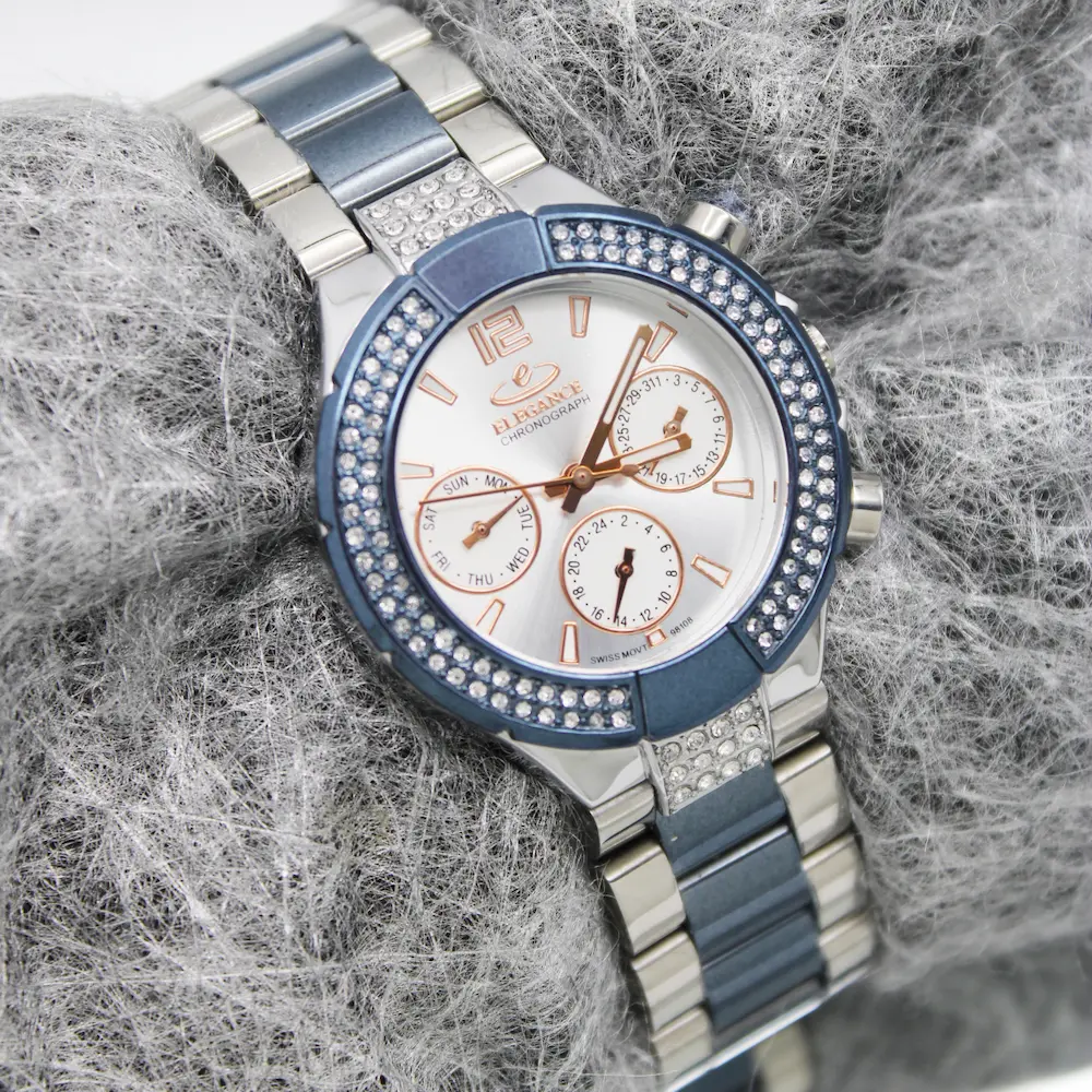 ساعت زنانه الگانس مدل 98108 مجهز به سه موتور فعال فول تایم است.
