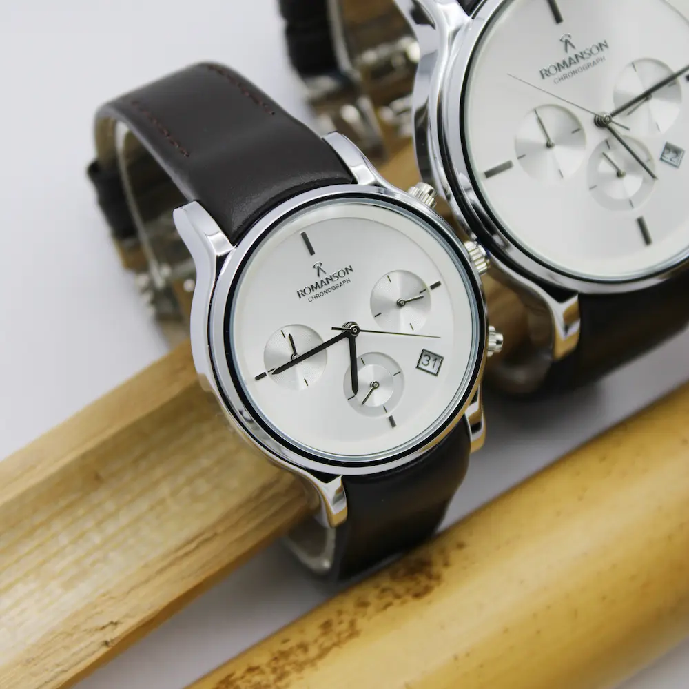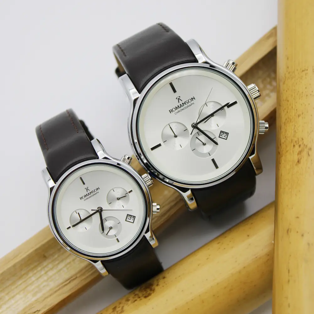 ساعت مچی عقربه ای ست زنانه و مردانه رومانسون مدل 83138 مناسب برای زوج های شیک پوش ، خوش سلیقه و البته وقت شناس می باشد.این ساعت مچی عقربه ای ست زنانه و مردانه رومانسون مدل 83138 3موتورفعال کرنوگراف می باشد.ست ست از ویژگی های بسیاری برخوردار است و دارای 2عقربه نمایشگر کرنو و عقربه نمایشگر ساعت 1تا24 می باشد.موتور این ساعت ست ژاپن می باشد و دارای نمایشگر تقویم نیز می باشد.جنس بدنه این ساعت مچی عقربه ای ست زنانه و مردانه رومانسون مدل 83138 استیل درجه 1 آنتی آلرژی و جنس بندش چرم می باشد.این ساعت بی شک جز زیباترین و باکیفیت ساعت های مدرن می باشد.ترکیب رنگ این ست طوری طراحی شده که با هر تیپ و استایلی به راحتی می توان ست کرد.این ساعت مچی عقربه ای ست زنانه و مردانه رومانسون مدل 83138 علاوه بر نمای شیک و ساده از کیفیت بی نظیری برخوردار می باشد.مجموعه شمسین این ست زیبا و باکیفیت را همراه با 1 سال ارانتی کارکردموتور و باتری خدمت شما عزیزان ارائه می دهد.شما می توانید اکسسوری مدنظرتان را بصورت نقد ویا اقساط از مجموعه شمسین تهیه کنید.ساعت مچی عقربه ای ست زنانه و مردانه رومانسون مدل 83138