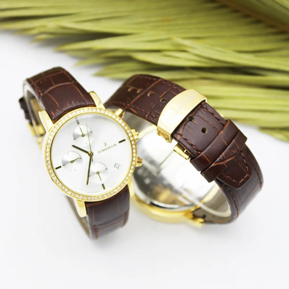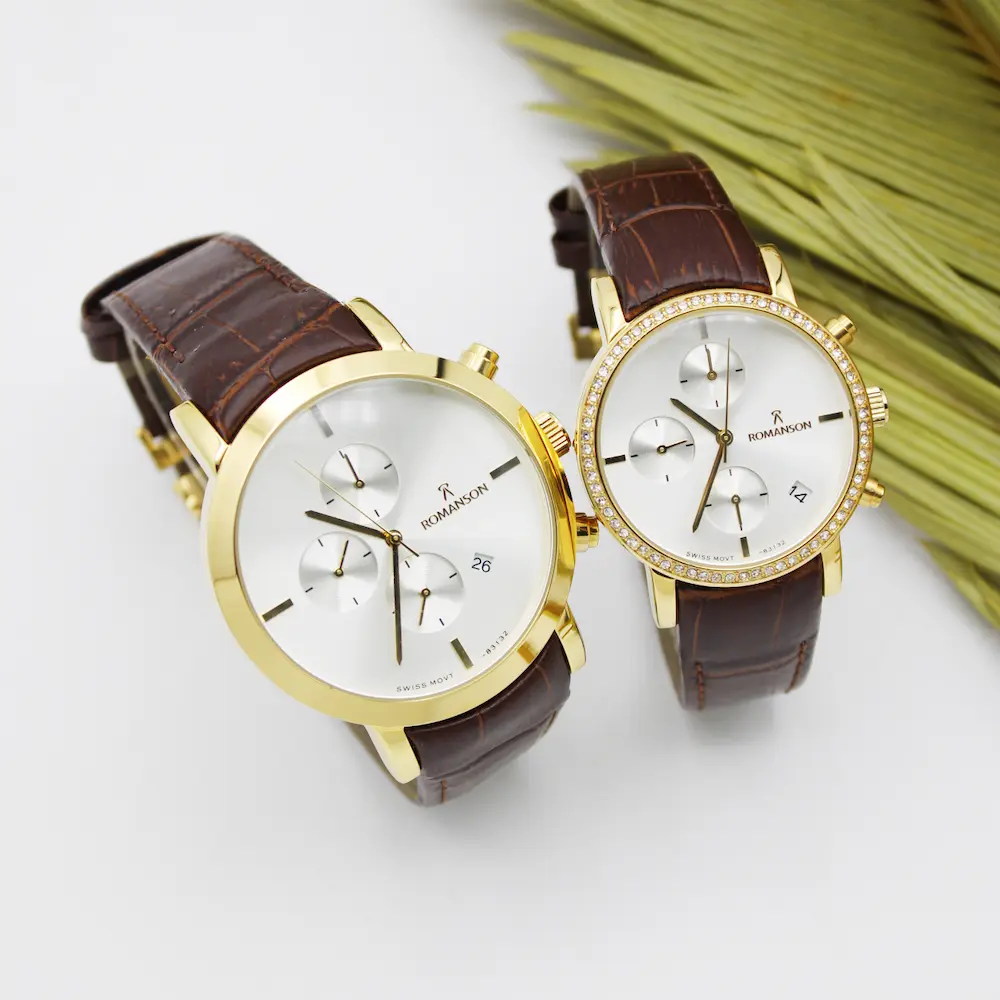 ساعت مچی عقربه ای ست زنانه و مردانه رومانسون مدل 83132 مناسب برای زوج های خوش پوش و خاص پسند می باشد.برند این ساعت مچی رومانسون می باشد و نیازی به توضیح ندارد.این ساعت جذاب از لحاظ ظاهر و کیفیت بی نظیر می باشد و جز زیباترین و خاص ترین ساعت ست ممکن می باشد.ترکیب رنگ های جذاب نما و زیبایی این ساعت را چندبرابر کرده است.ترکیب رنگ سفید صدفی در صفحه و بند قهوه ای این ساعت نظر هر بیننده و ساعت دوست را به خود جذب میکند.این ساعت مچی مدل 83132 3موتور فعال کرنوگراف می باشد.به تفکیک دارای 1 عقربه نمایشگر ساعت 1 تا 24 ، دارای 2 عقربه نمایشگر کرنو و دارای نمایشگر تقویم می باشد.موتور این ساعت ژاپن می باشد.جنس بند چرم و جنس جنس بدنه ساعت مچی مدل 83132 استیل درجه 1 آنتی آلرژی می باشد.مجموعه شمسین این ساعت مچی عقربه ای ست زنانه و مردانه رومانسون مدل 83132 را به زوج های جذاب و البته خاص پسند بدلیل ترکیب رنگ های جذاب و جالب پیشنهاد می دهد.شما می توانید اکسسوری مدنظرتان (ساعت ، عینک آفتابی/طبی و ادکلن) را بصورت اقساط ویا نقد از شمسین با برترین کیفیت تهیه و بصورت ارسال رایگان دریافت کنید.