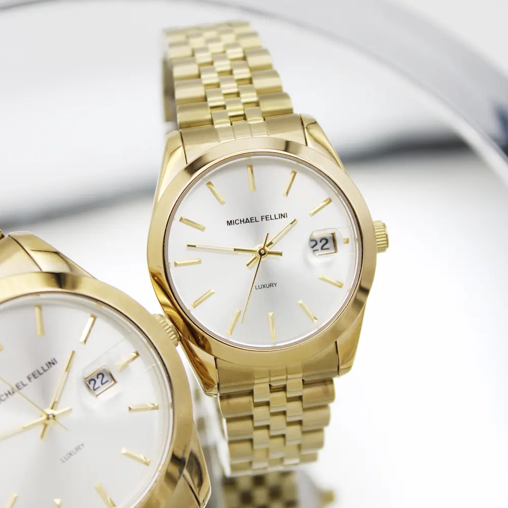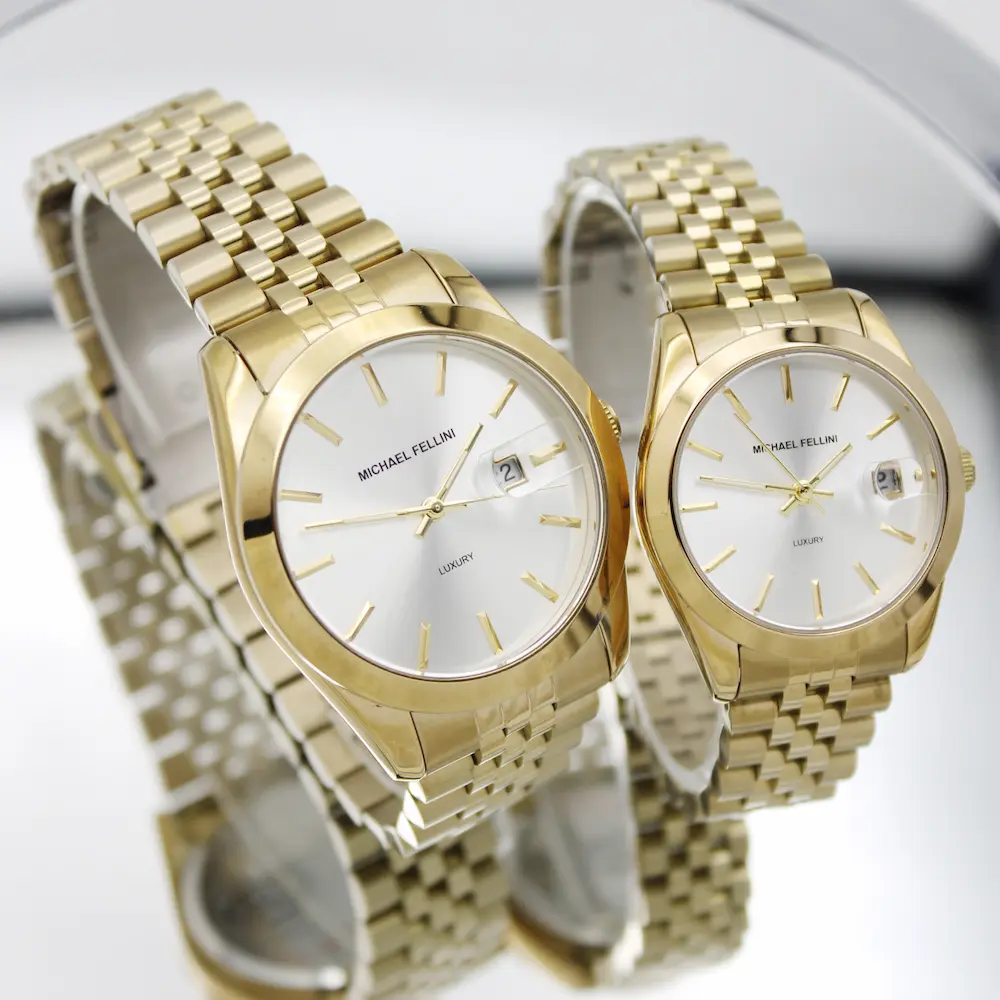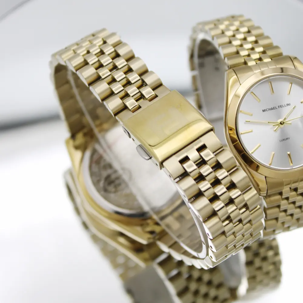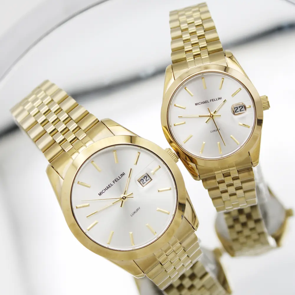 اگر به دنبال یک ست ساعت زنانه و مردانه لوکس، بادوام، هماهنگ و مناسب برای تمام موقعیت‌ها هستید، مایکل فلینی مدل 2391/2392 بهترین انتخاب شماست. این مدل با بدنه استیل آنتی‌آلرژی، بند استیل مقاوم، موتور دقیق و ظاهر کلاسیک طلایی، ارزش خرید بسیار بالایی دارد.