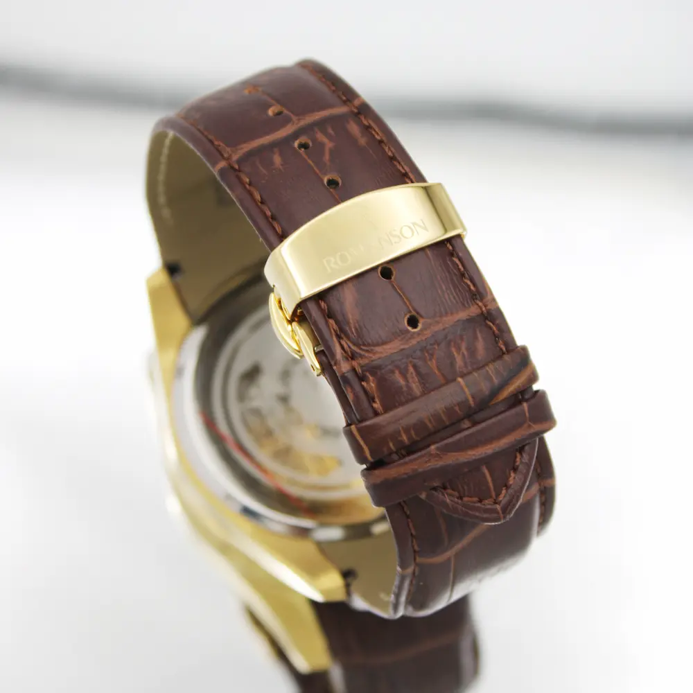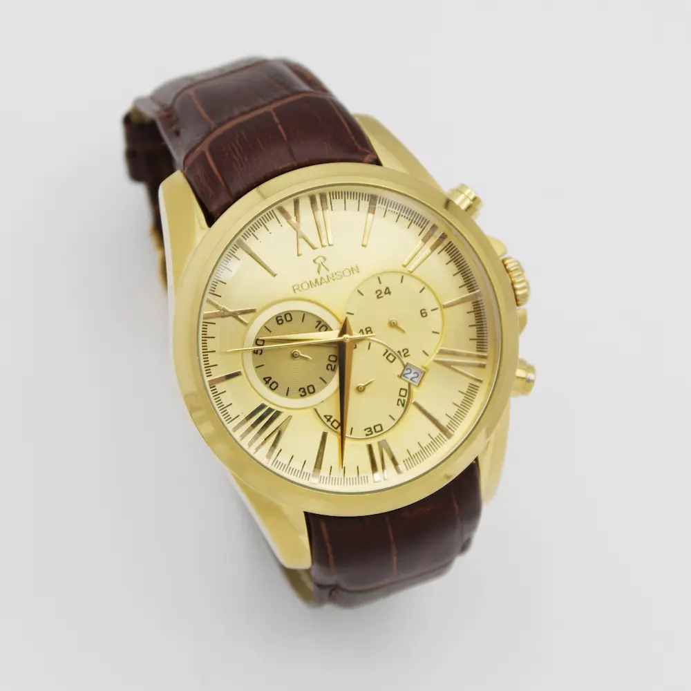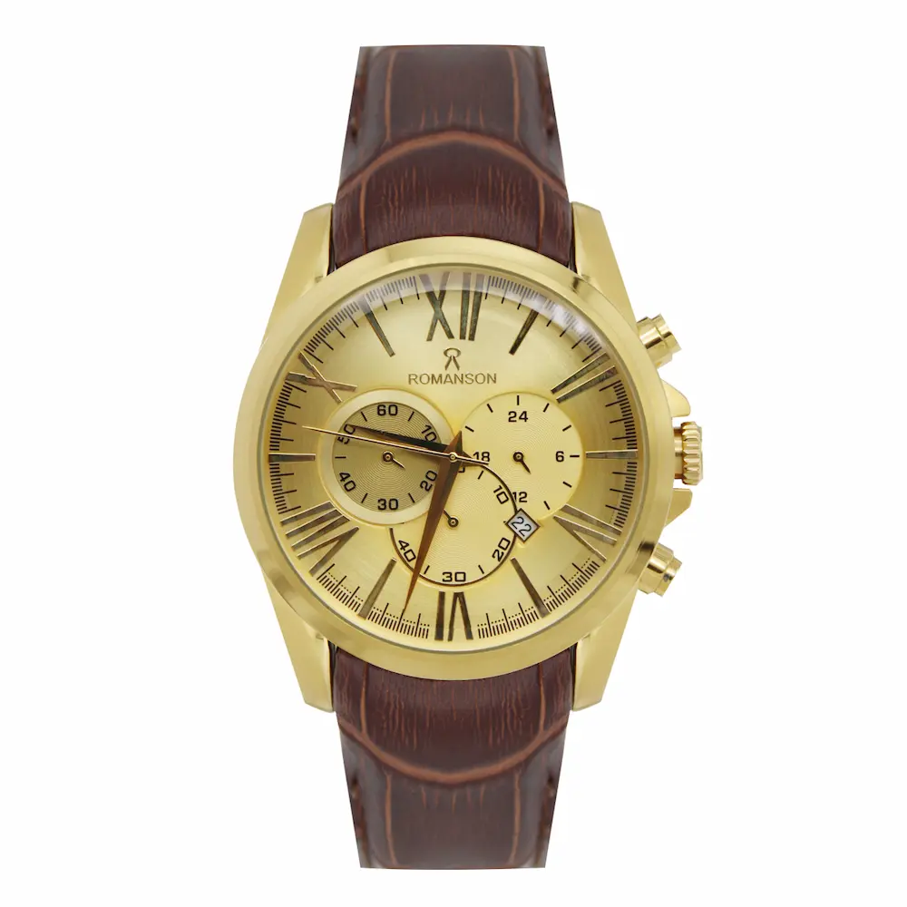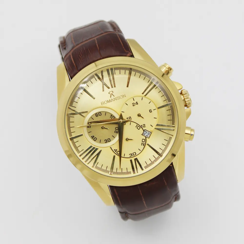 ساعت مردانه رومانسون مدل 1288 با بدنهای از استیل ضد زنگ و ضد حساسیت طراحی شده است. رنگ طلایی قاب در کنار بند چرمی قهوهای، هارمونی بینظیری ایجاد کرده و جلوهای شیک و رسمی به این ساعت بخشیده است. استفاده از اعداد رومی در صفحه، طراحی ساعت را خاصتر و کلاسیکتر نشان میدهد.