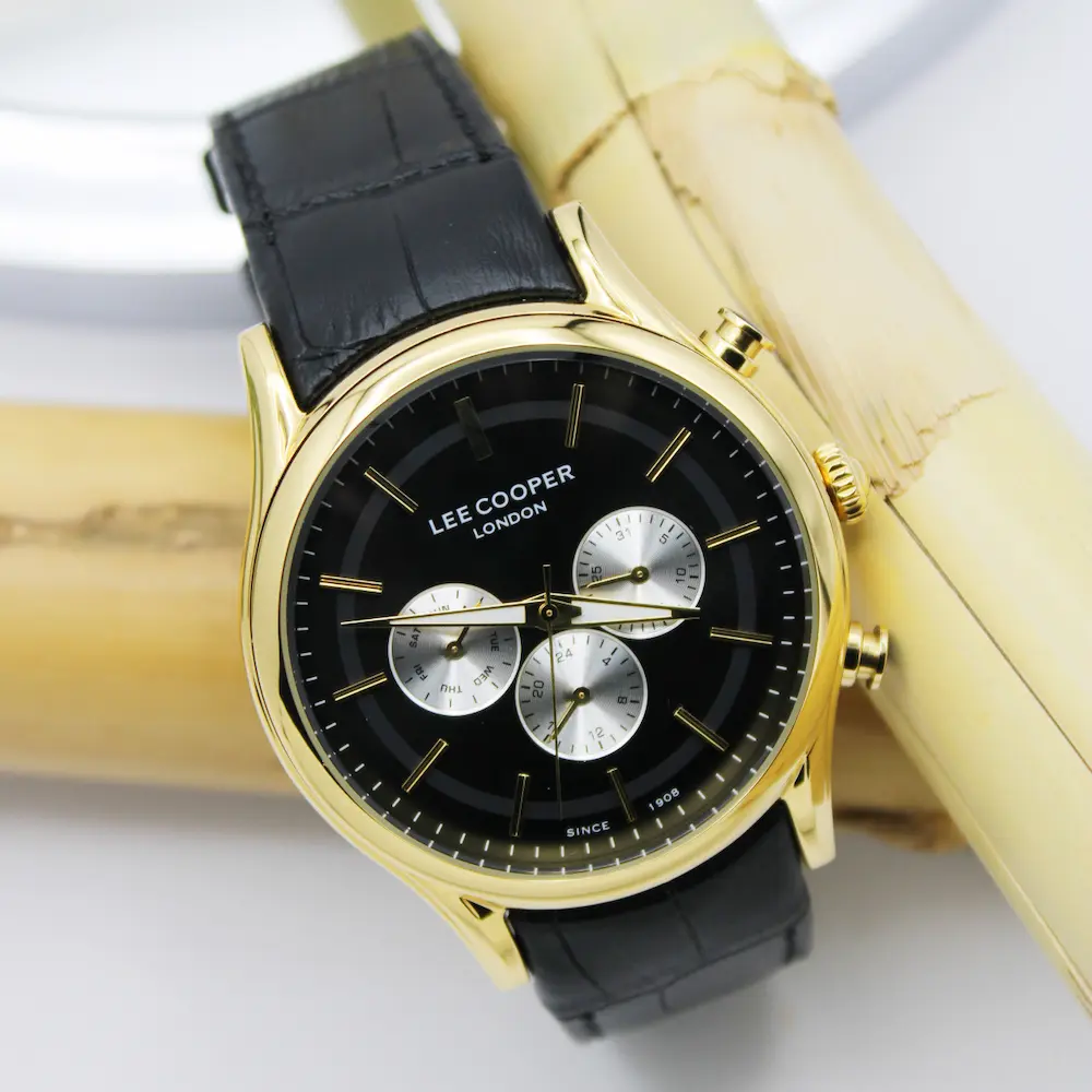 ساعت مچی عقربه ای مردانه لی کوپر مدل 07207 بی شک توی مدل ها و زیبایی در اولویت قرار داره.این ساعت مچی علاوه بر ظاهر و طراحی خاص و زیبا از کیفیت بی نظیری برخوردار است.موتور این ساعت با کیفیت ، ژاپن و 3 موتور فعال فول تایم می باشد.این ساعت مناسب برای آقایانی می باشد که به تیپ و ظاهر اهمیت می دهند و وقت شناس هستند.موتورهای این ساعت به ترتیب نمایشگر تقویم ، نمایشگر ساعت 1 تا 24 و نمایشگر ایام هفته می باشد.عقربه های این ساعت مچی شبتاب می باشد و در تاریکی هم قابلیت خوانده شدن را دارد.طراحی خاص این ساعت و ترکیب رنگ های خاص پسند ، نمای این ساعت اورجینال/اصل را بی حد و مرز کرده است.ترکیب رنگ های طلایی ، مشکی و سفید در صفحه این ساعت باعث شده نظر هر بیننده ای را خود جلب کند.تمایز رنگ موتورها و عقربه ها با رنگ زمینه در صفحه این ساعت در صفحه خواندن آن ها را بسیار آسان کرده.ترکیب رنگ ها خاص و شکیل صفحه با قاب و قفل طلایی ، بند مشکی زیبایی بی نظیری به ظاهر این ساعت بخشیده است.این ساعت مچی اورجینال و دارای 1 سال گارانتی کارکرد موتور و باتری می باشد.جنس بدنه استیل درجه 1 آنتی آلرژی و جنس بند این ساعت چرمی می باشد.این ساعت مچی بی تردید جز زیباترین و باکیفیت ساعت های مدرن می باشد.مجموعه شمسین این ساعت زیبا و باکیفیت را همراه با پک اصلی خود برند و 1 سال گارانتی کارکردموتور و باتری خدمت شما عزیزان ارائه می دهد.شما می توانید اکسسوری مدنظرتان را بصورت نقد ویا اقساط از مجموعه شمسین تهیه کنید.