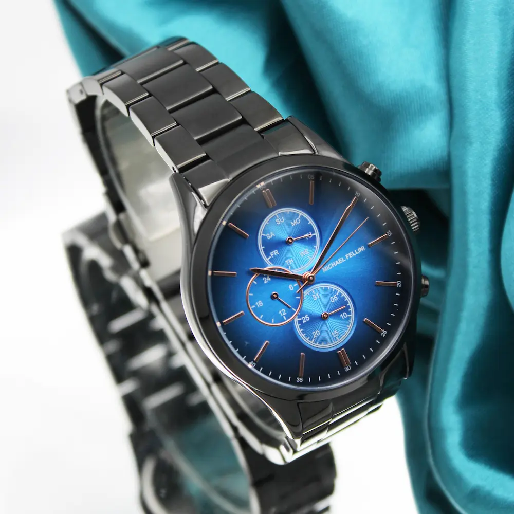 ساعت مچی عقربه ای مردانه مایکل فلینی مدل 2351ترکیب قدرت، ظرافت و دقت در طراحیمناسب آقایان شیکپوشموتور ژاپنی دقیق و قدرتمنداورجینال با اصالت برندرنگ بند: مشکیرنگ قاب: مشکیصفحه سرمهای خاص و زیباسه موتوره فعال با عملکرد کاملنمایشگر ایام هفته، تقویم، و ساعت ۲۴بند استیل ضد حساسیتقفل پروانهای ضامندارطراحی شیک، ساده و چشمنوازتوضیحات کامل محصول:ساعت مچی عقربه ای مردانه مایکل فلینی مدل 2351 ، ساعتی خاص برای مردانی خاص.اگر بهدنبال ساعتی با طراحی مدرن، عملکرد حرفهای و رنگبندی متفاوت هستید، این مدل یک انتخاب عالی برای شماست.قاب و بند تماماستیل مشکی رنگ، در کنار صفحهی سرمهای خاص، ترکیبی خیرهکننده و جذاب ایجاد کرده است.این ساعت مجهز به سه موتور فعال (فول تایم) با عملکرد کامل است. عقربههای جانبی بهطور دقیق، روز هفته، ساعت ۲۴، و تاریخ روز را نمایش میدهند و این امکانات را برای استفاده روزمره و رسمی، بسیار کاربردی میسازد.موتور ژاپنی باکیفیت بالا در قلب این ساعت کار میکند و دقت و پایداری آن تضمینشده است. بند استیل مشکی از نوع ضد حساسیت بوده و برای پوستهای حساس نیز کاملاً مناسب است.قفل این مدل از نوع پروانهای ضامندار طراحی شده که باز و بسته شدن آن را آسان، راحت و ایمن کرده است.مایکل فلینی 2351 نهتنها یک ساعت، بلکه بخشی از استایل خاص شماست. ساعتی مناسب برای محیط کاری، جلسات رسمی، و حتی استفاده روزمره که کیفیت و طراحی آن نگاهها را جذب میکند.مجموعه شمسین این ساعت مچی اورجینال / اصل را همراه با 1 سال گارانتی کارکرد موتور و باتری خدمت شما عزیزان ارائه می دهد.شما عزیزان می توانید اکسسوری مدنظرتون (ساعت مچی ، عینک آفتابی و ادکلن ) مدنظرتون را بصورت نقد یا اقساط از مجموعه شمسین با برترین کیفیت تهیه کنید.